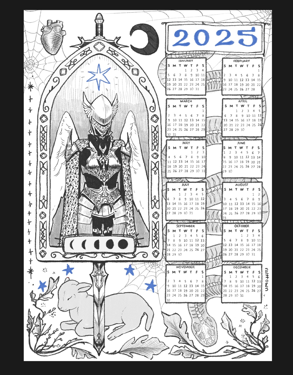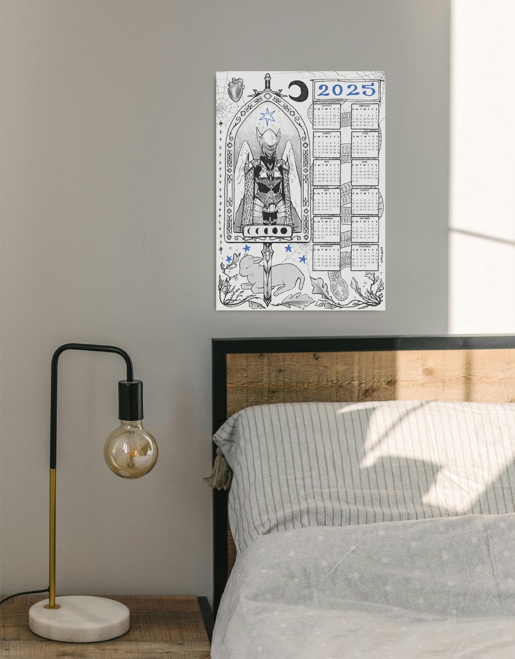 This year I am providing a hand-drawn 2025 medieval themed calendar FREE to download and print (as many times as you need to fill your wall).